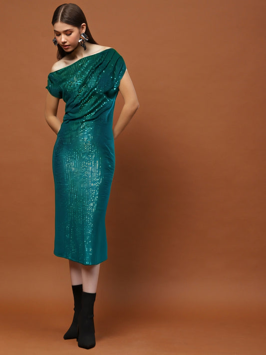 Green Sequin One Shoulder Bodycon Mini Dress – Glamorous Party & Evening Wear