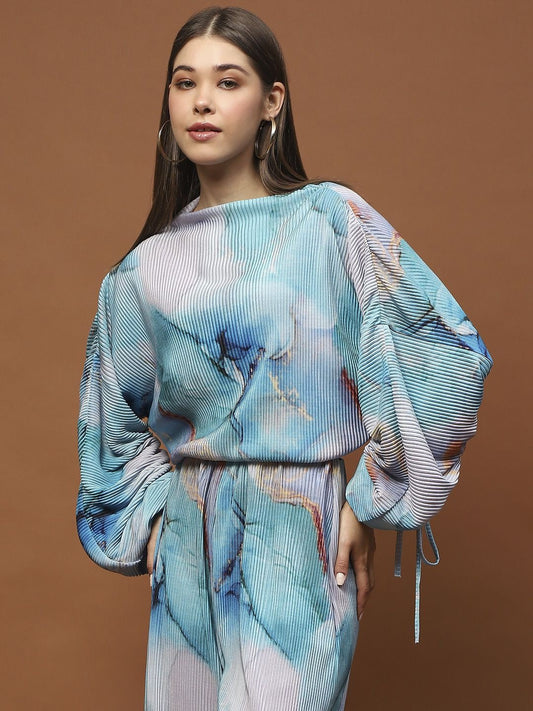 Elegant Blue and Off-White Floral Cord-Set for Women Stylish Crop Top with Flowing Skirt Casual & Party Wear Outfit