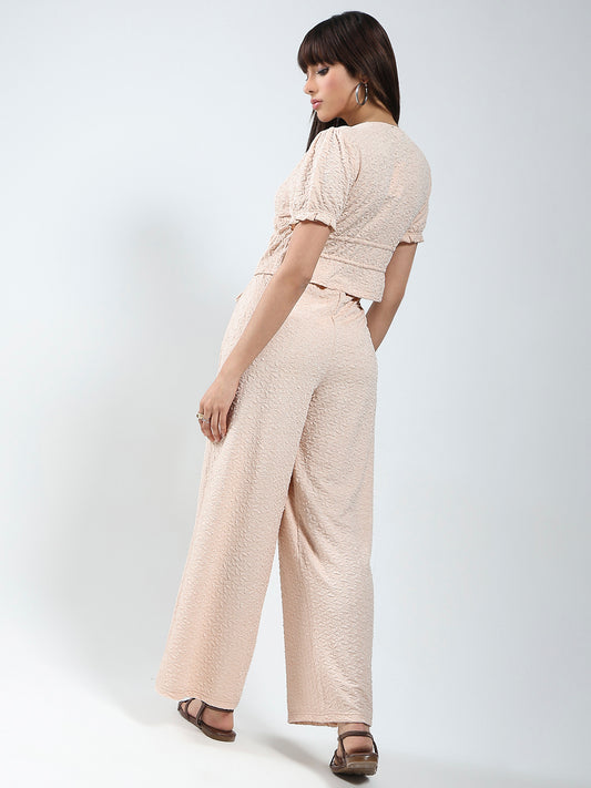 Sera women Ecru solid top and trouser cord-set