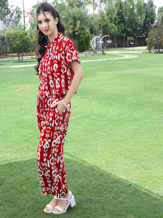 Stylish Red Printed Cord Set for Women , Festive & Party Wear Indo-Western Co-ord Outfit