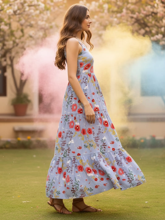 Sera Printed Round Neck Fit and Flare Short Sleeves Knee Length Dresses