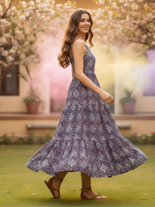 Sera Printed Round Neck Fit and Flare Long Sleeves Knee Length Dresses