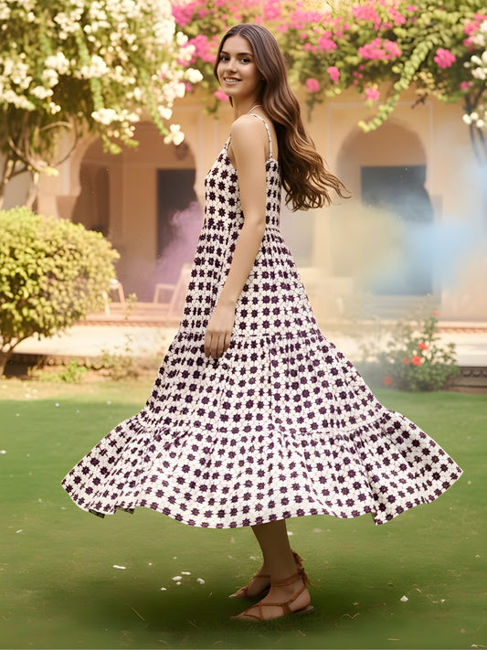 Sera Checked Square Neck Fit and Flare Short Sleeves Mini Dresses