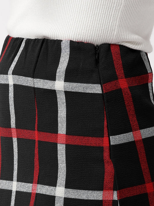 Black Checkerd Printed Flared Skirt