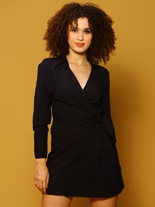 Black Solid Mini Dress