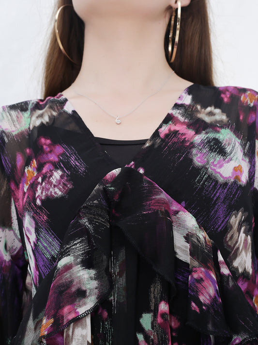 Ruffle Black Print Dress