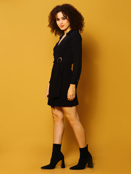 Black Solid Mini Dress