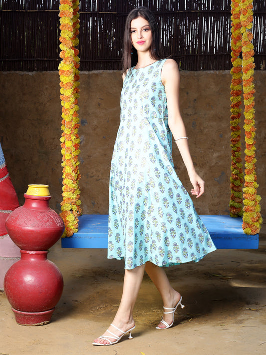 Blue Print Midi Dress