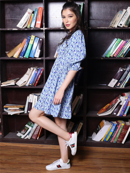 Blue Floral Mini Dress