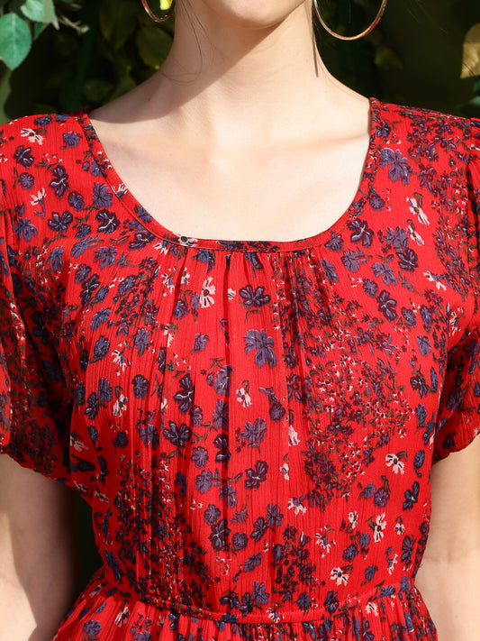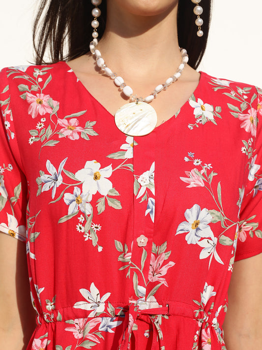 Red Floral Midi dress