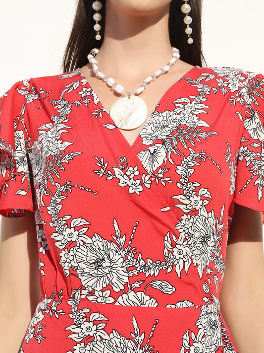 Red floral Mini Dress