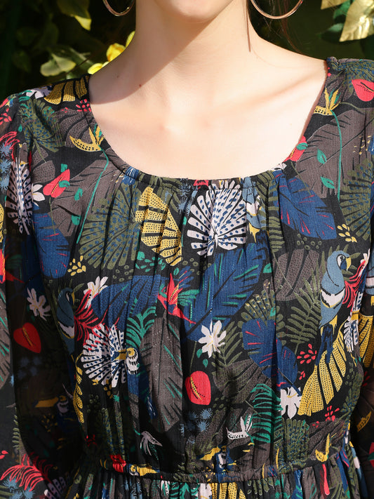 Black floral Midi Dress
