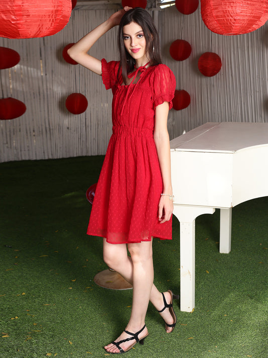 Red solid Mini Dress