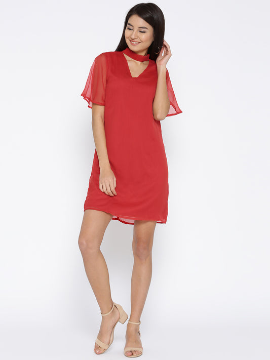 Valentine Mock Wrap Swiss Dot Chiffon Mini Dress