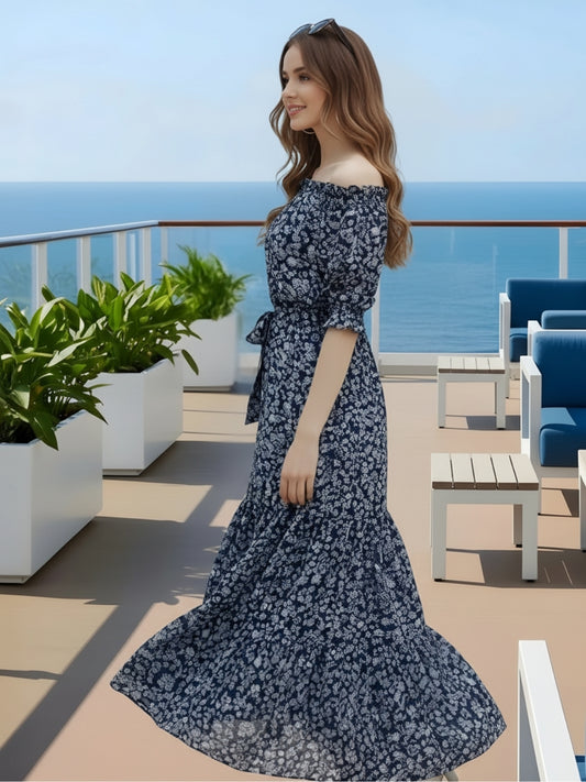 Navy Long Off shoulder dress