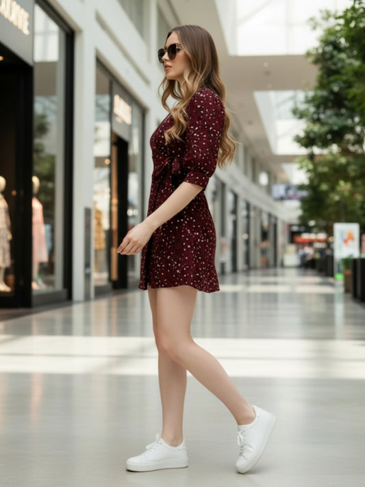 Sera Printed V-Neck Wrap Short Sleeves Mini Dresses