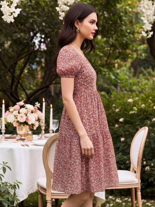 Sera Printed Round Neck Fit and Flare Short Sleeves Knee Length Dresses