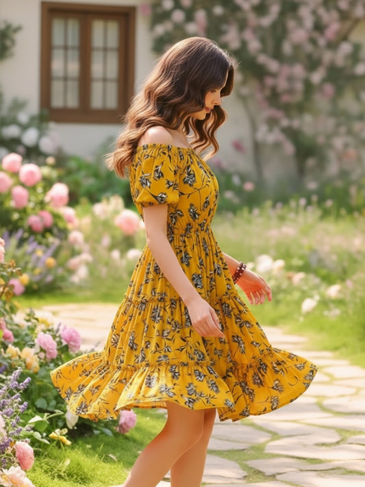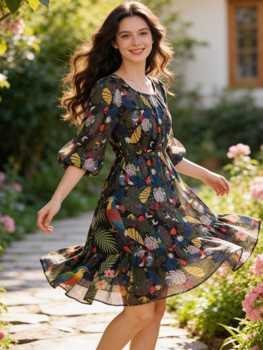 Floral Drama Puff Sleeve Organza Statement Style Mini Dress