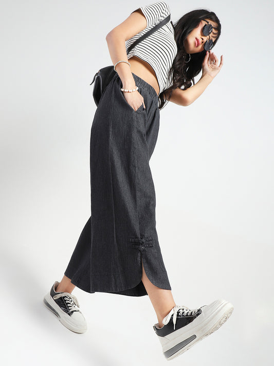 Wide Leg Button Pocket Denim