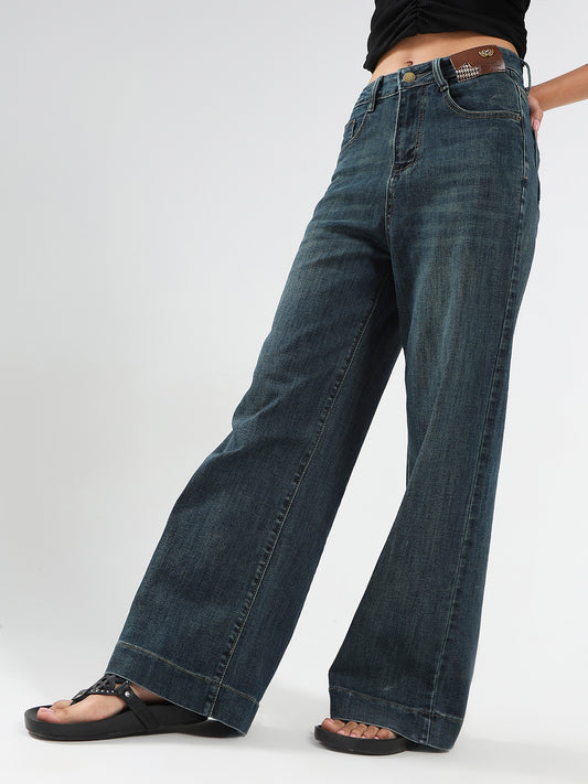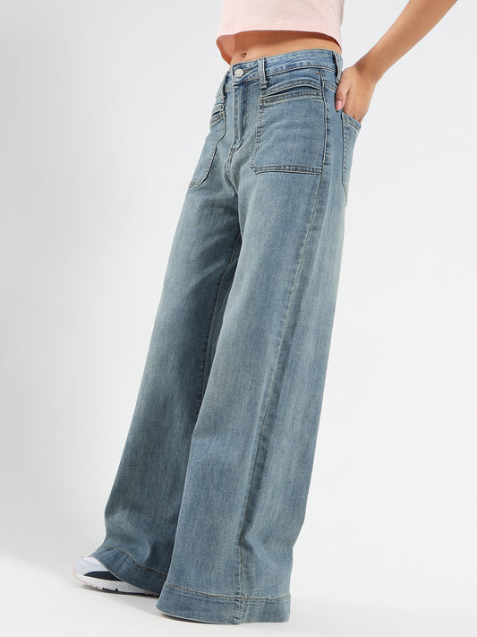 Blue High Waist Wide Leg Jeans