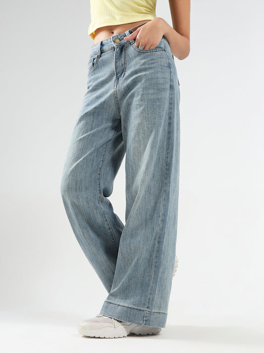 Light Blue High Waist Wide Leg Jeans