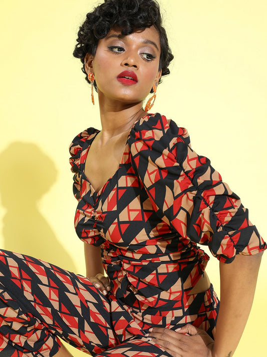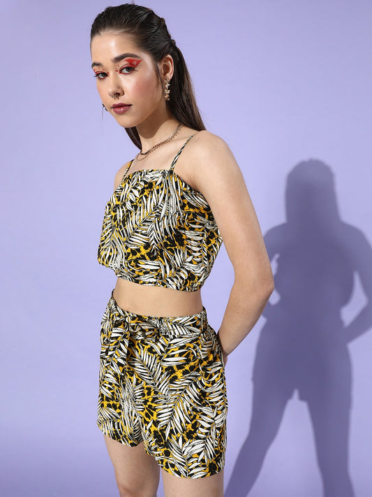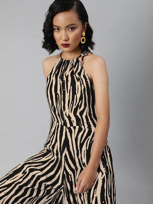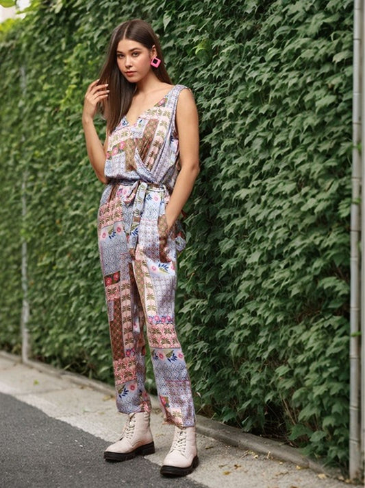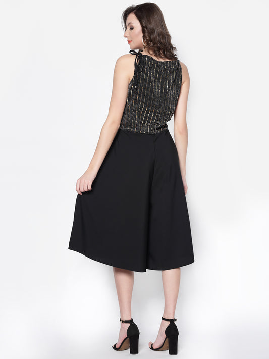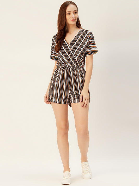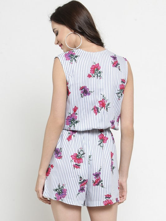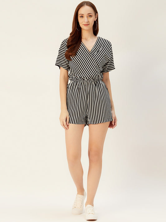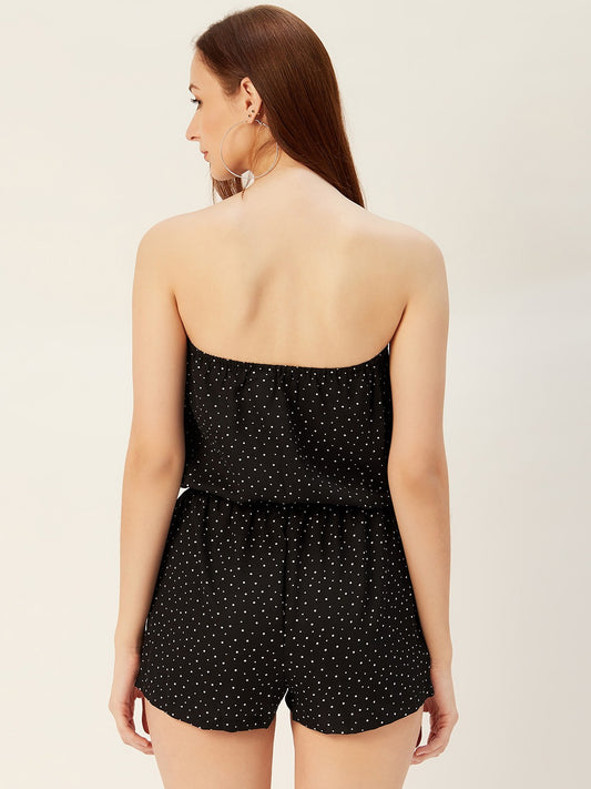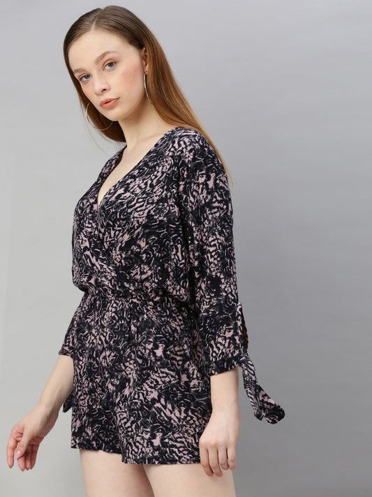 Black & Grey Printed Playsuit with Wrap Front Tie Knot