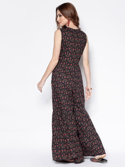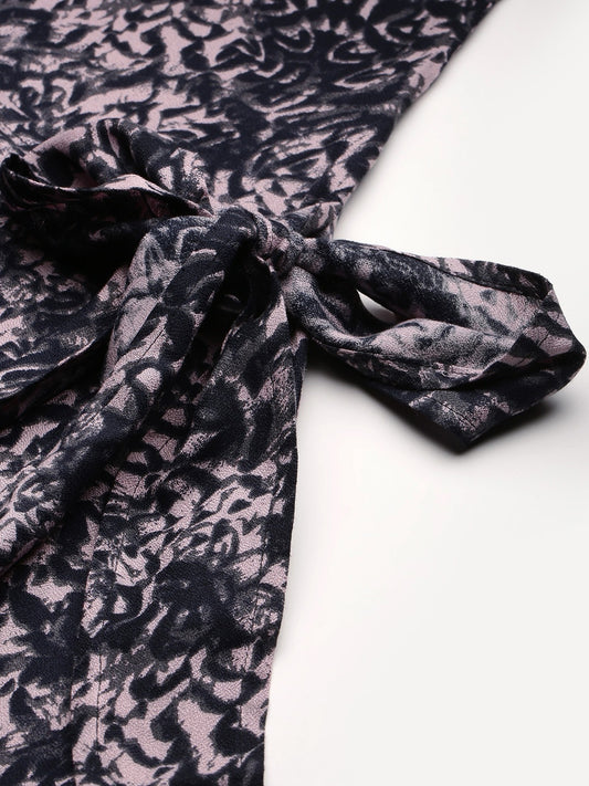 Black & Pink Printed Wrap Dress With Waist Tie-ups