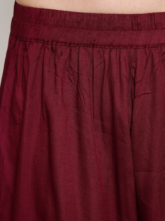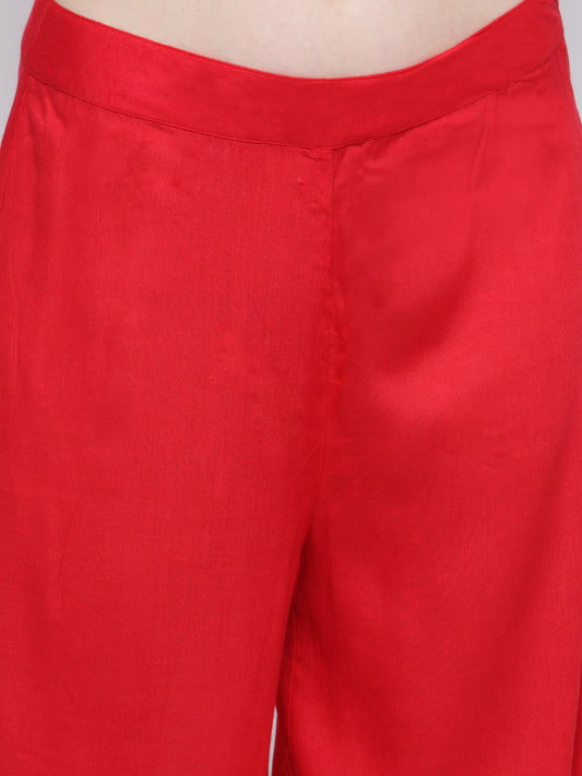 Coral Solid bell sleeve Kurta and White Palazzo Set