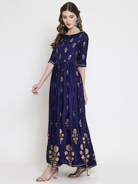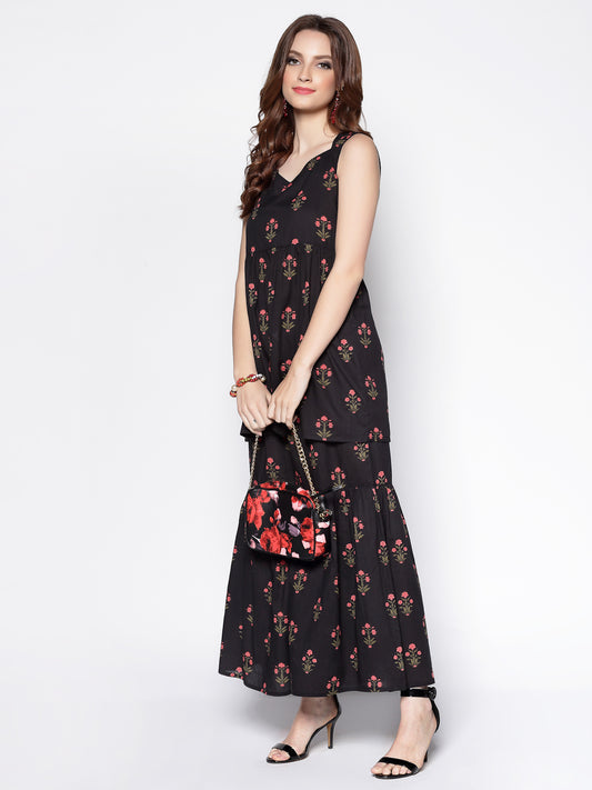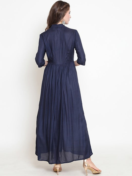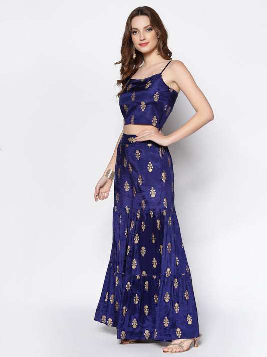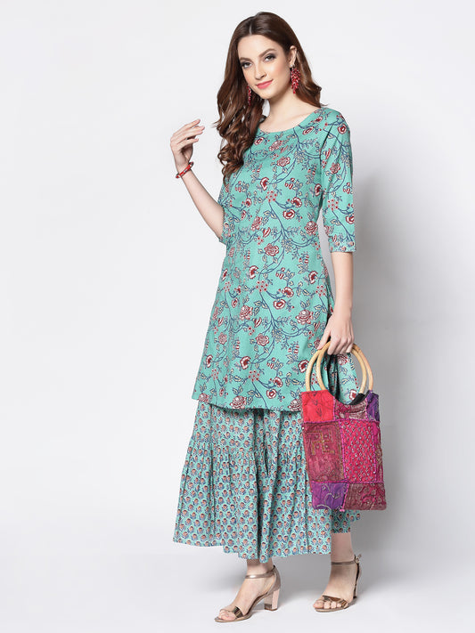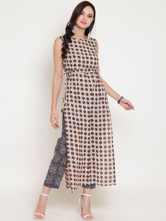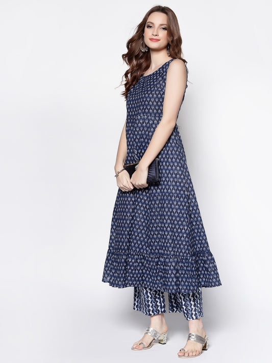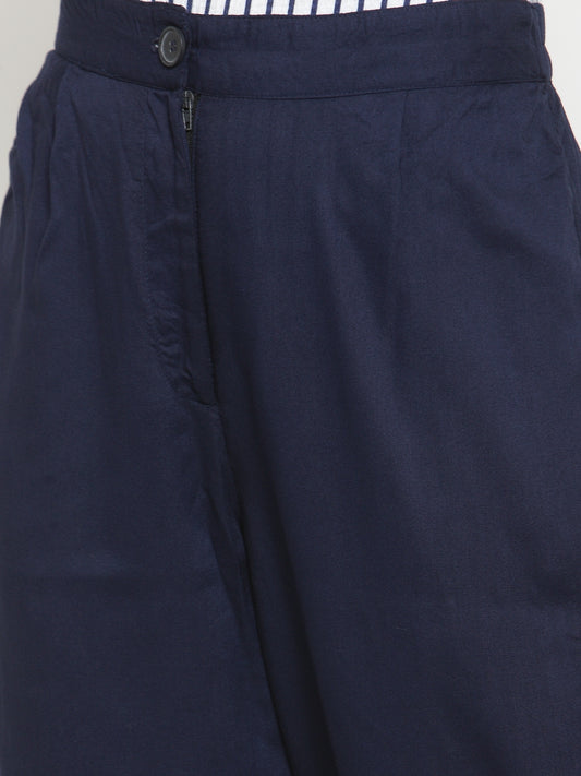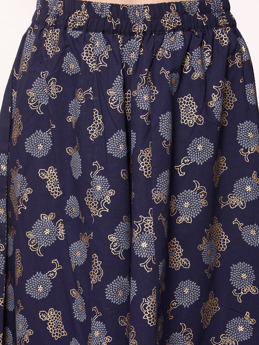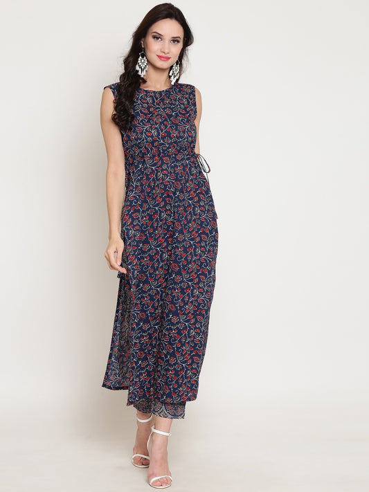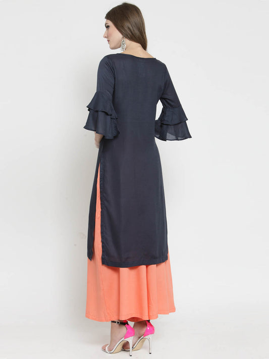 Navy Solid bell sleeve Kurta and Coral Palazzo Set