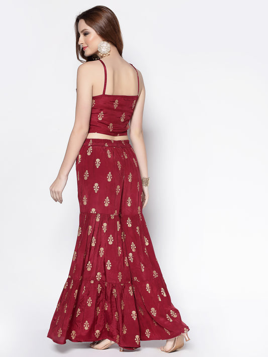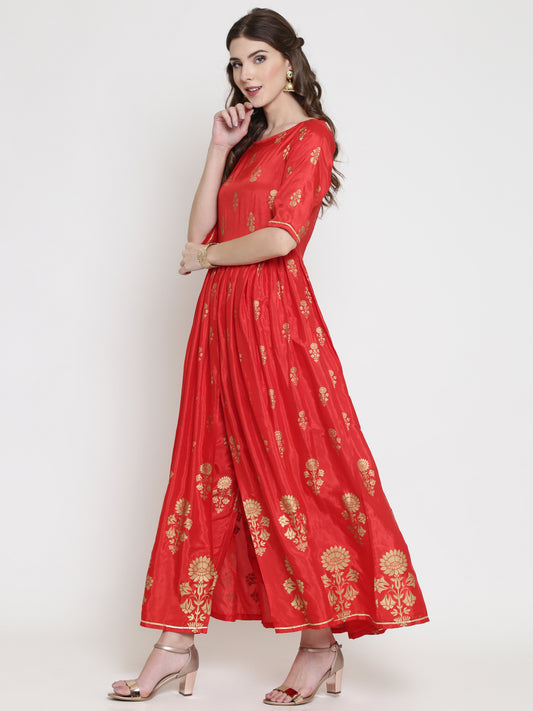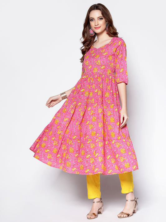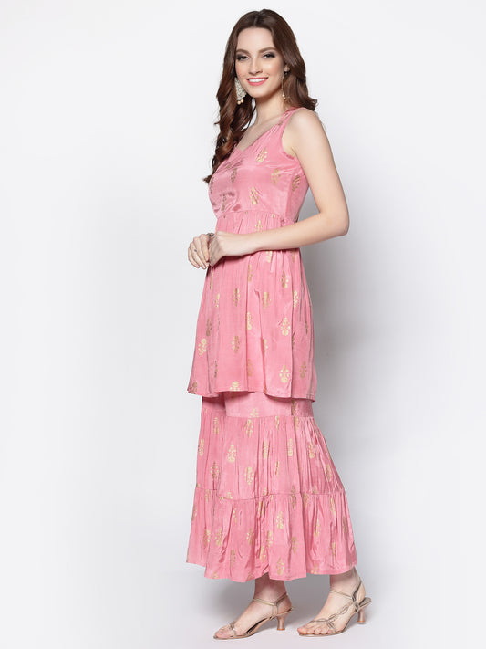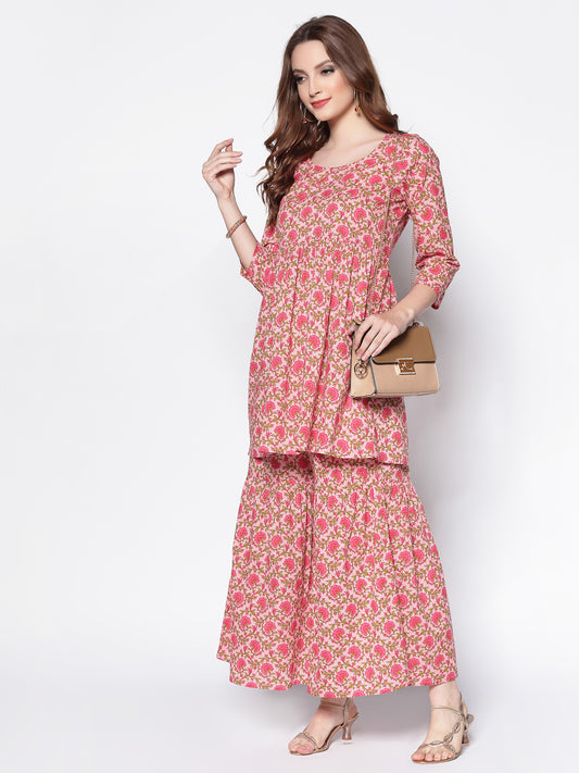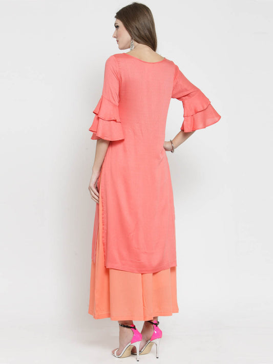 Coral Solid bell sleeve Kurta and Coral Palazzo Set