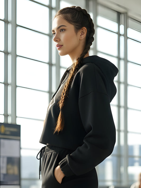 Black Printed Crop Sweatshirt for Women | Stylish Black Hoodie for Casual Wear