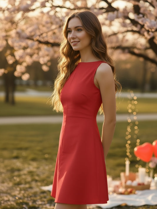 Red Satin Valentine Bodycon Dress for Women Romantic Halter Neck Party Wear Dress