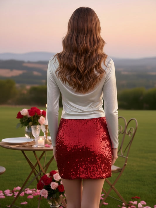 Red Sequin Furry Top for Women – Partywear Shimmer Top | Stylish Designer Evening Top