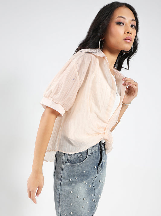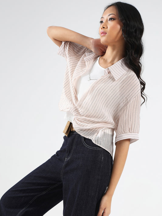 Blush Pink Striped Oversized Top with inner tank top and necklace