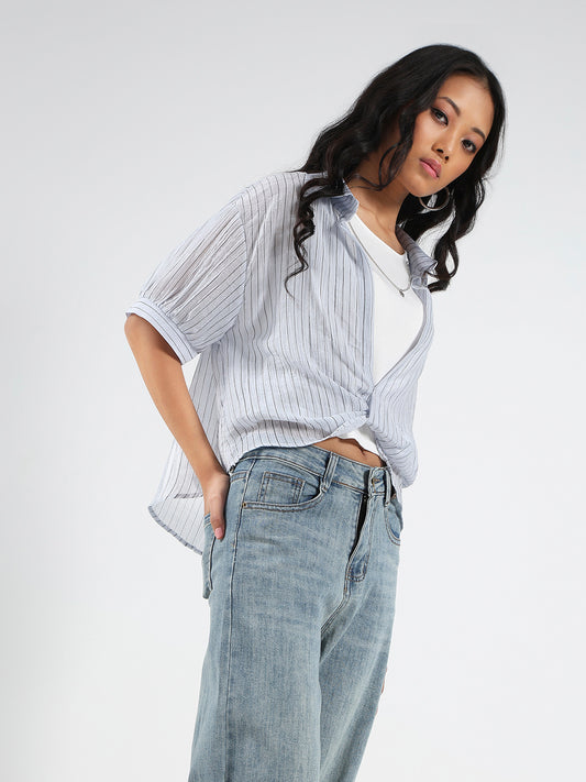 White Striped Oversized Top with inner tank top and necklace