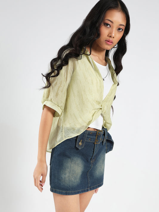 Lime Green Tencel Nylon Oversized Shirt with tank top and Necklace