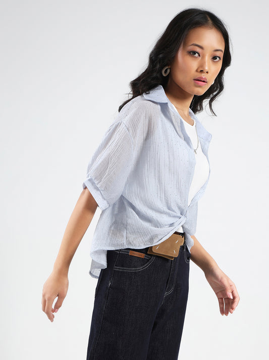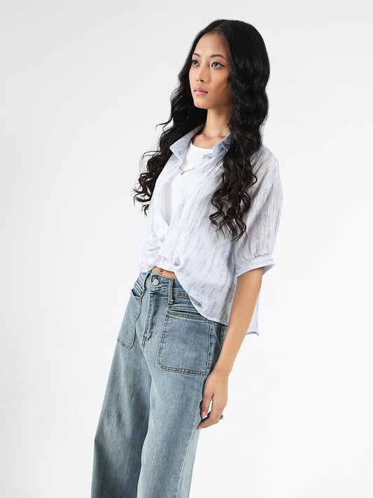 Light Blue Tencel Nylon Oversized Shirt with tank top and Necklace