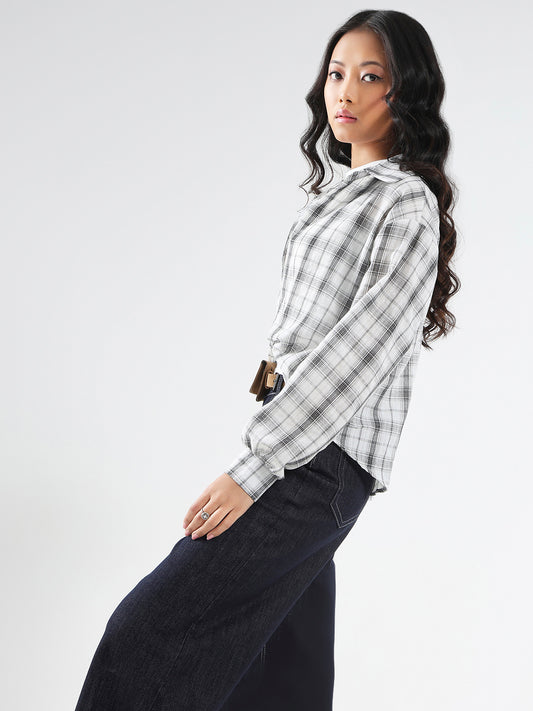White Grey Checkered Oversized Shirt with tank top and necklace