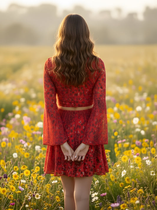 Sera Red Printed Top Skirt Cord-Set