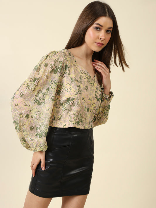 Beige Print Styled Top