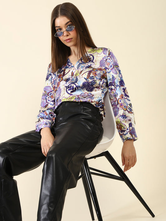 Purple Print Wrap Top