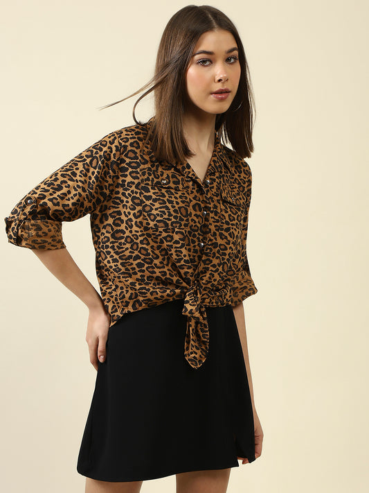 Brown Print Shirt StyleTop