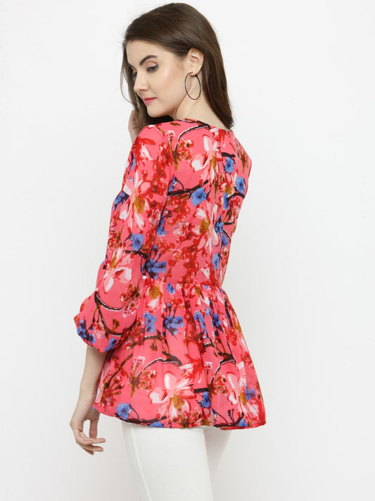 Coral printed peplum top