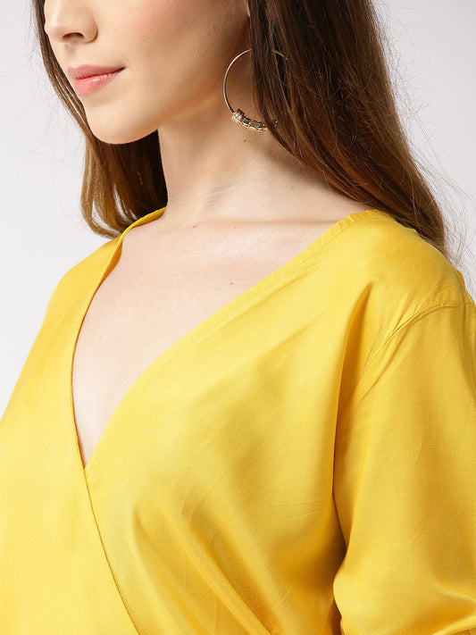 Yellow Sold Front Tie-up Top