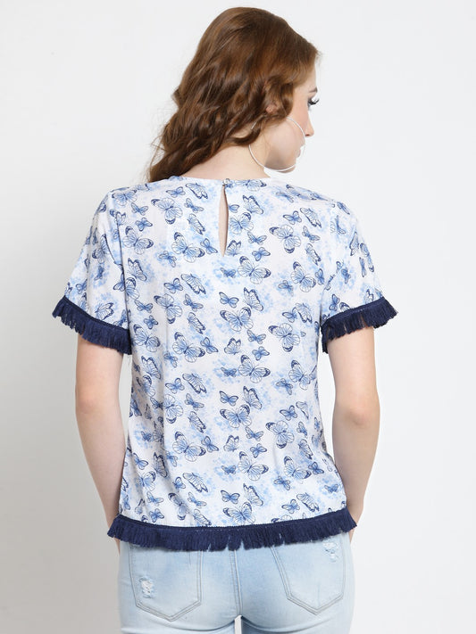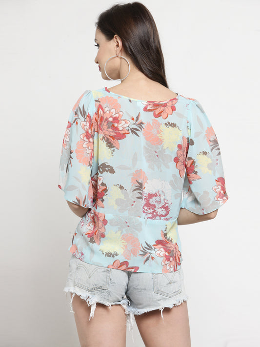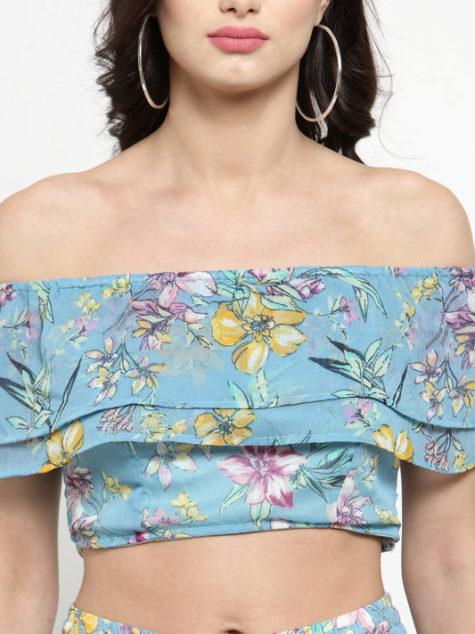Blue Floral Printed Double Layer Crop Top