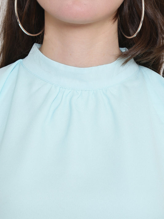 Aqua Blue Front Pleated Pleasant Top