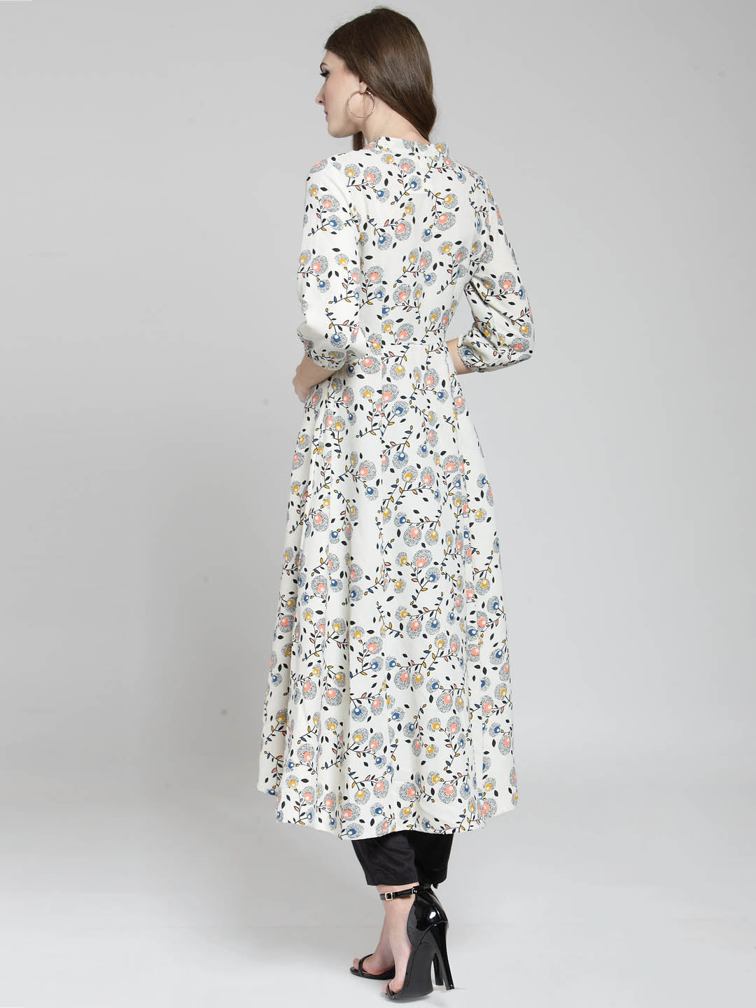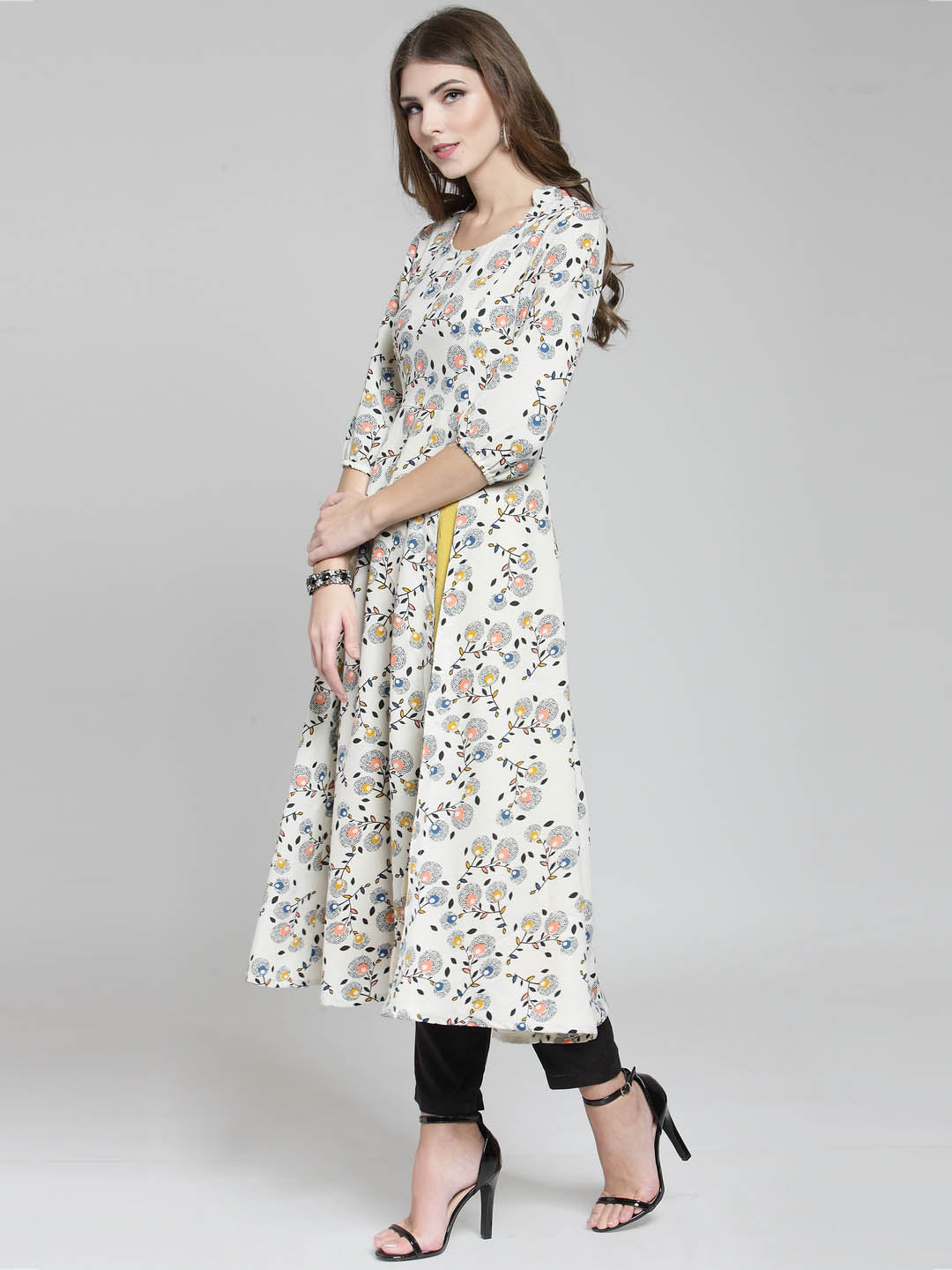 Cream Floral Printed Flared Kurta and Black Palazzo Set