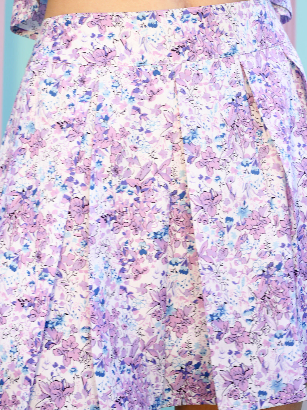 Mauve Printed has a halter Neck and sleeveless Top and Skirt has a slip-on closure Cord-Set