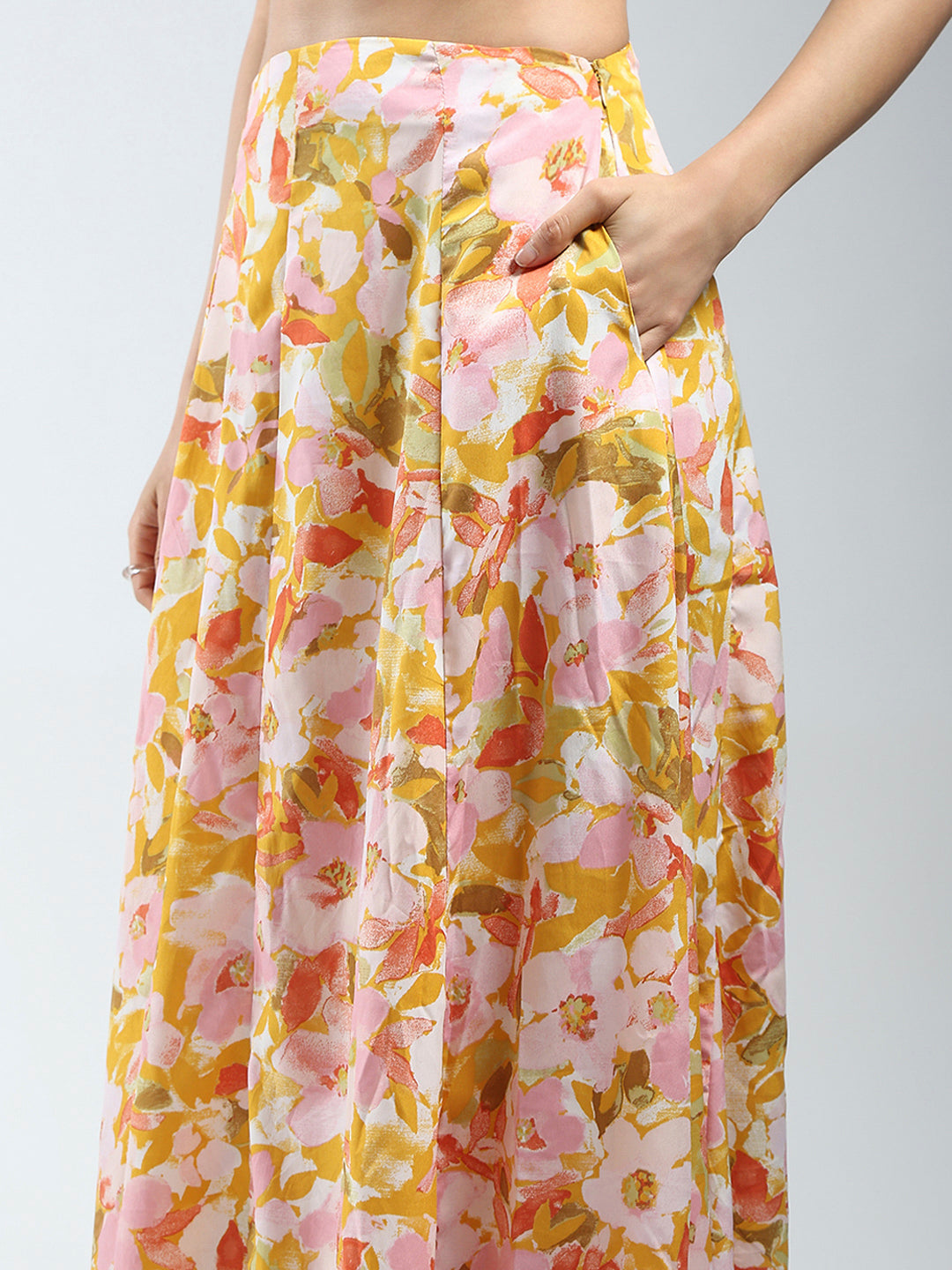 Serving sunshine and slay in one look 🌞💐—this floral co-ord set is your Gen-Z-approved ticket to turning heads at brunches, vacations, and rooftop parties. Featuring a chic cropped blouse with cap sleeves and a matching high-low skirt, this two-piece outfit gives retro feels with a Y2K twist 🔥.