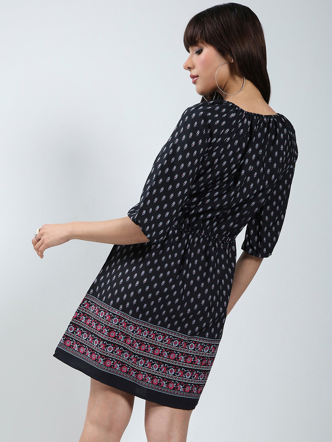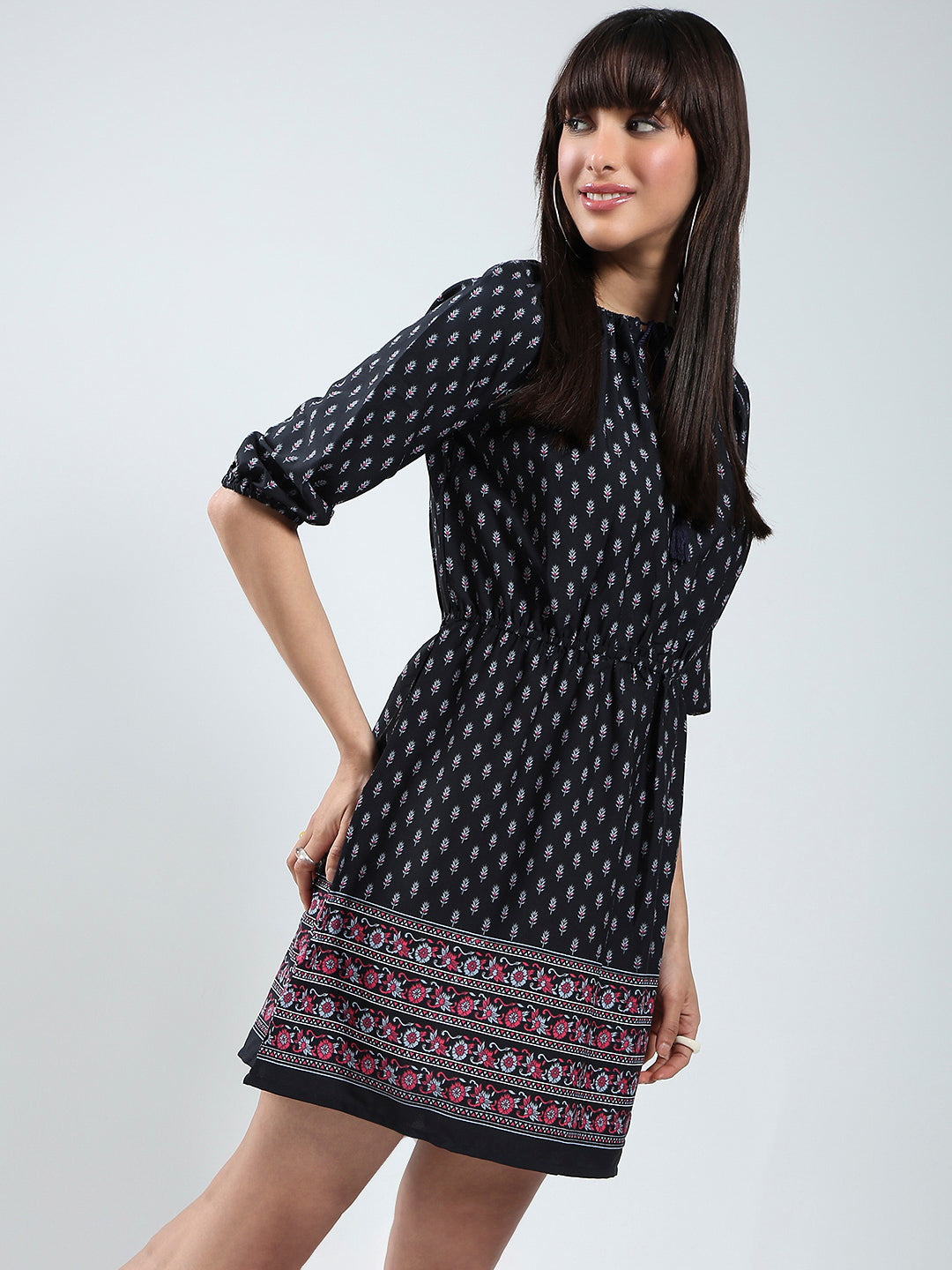 Multi Ethnic Motifs Printed Elasticated Waist Dress